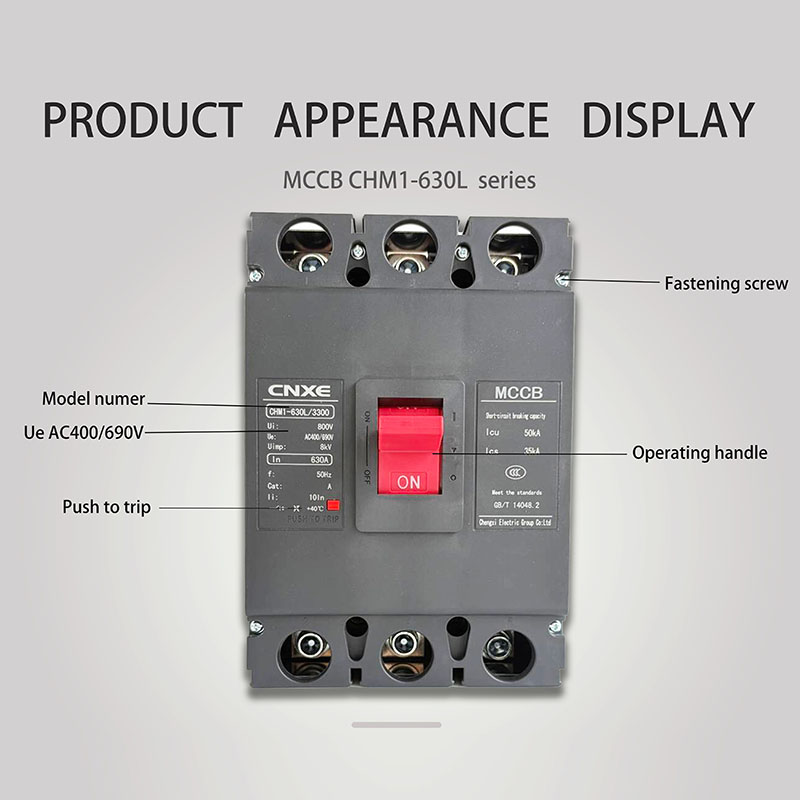 The 630A 3P Molded Case Circuit Breaker (MCCB) is CE certified, guaranteeing high-quality performance and adherence to international safety standards. Designed for industrial and commercial power distribution, it provides robust overload and short-circuit protection, ensuring your system’s stability and operational reliability. Combining advanced design with durable construction, this MCCB is ideal for professionals seeking flexible, dependable, and fully customizable electrical protection solutions. Together with the CHM1 series, it forms a comprehensive solution for modern power systems, offering safety, reliability, and performance in one package.