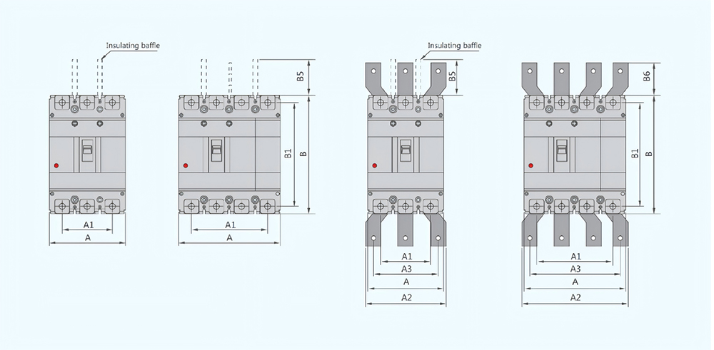 Suitable for common AC power distribution voltage environments, and can be flexibly applied to three-phase circuits with different voltage requirements. The circuit breaker's ability to withstand impulse voltages such as lightning strikes ensures equipment safety under transient high-voltage interference. In the event of a short-circuit fault, it can safely interrupt the maximum short-circuit current, effectively disconnecting the faulty circuit and protecting system equipment. It adopts a molded case structure, possessing good insulation performance and mechanical strength. Easy to operate, the "ON" indicator clearly shows the closed circuit state. It can effectively handle overload and short-circuit faults in power distribution lines, quickly disconnecting the circuit and protecting downstream electrical equipment. Widely used in low-voltage power distribution systems in industrial plants, commercial buildings, and other places, providing reliable protection for electrical safety and stable system operation.